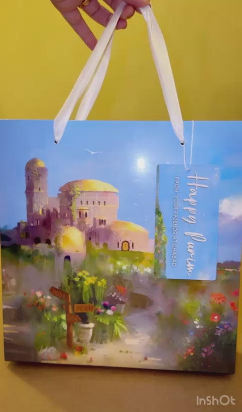The sets come with tags that say "Happy Purim' or "Happy Purim from your friends at Chabad".